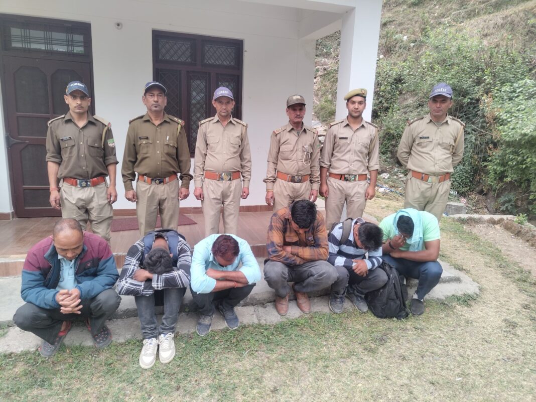 आरोपियों ने पूछताछ में अपना नाम मस्तान सिंह पुत्र बुद्धबल्लभ सिंह, राजेन्द्र खत्री पुत्र मान सिंह, मनोज चंद्र पुत्र रामलाल, देवेन्द्र लाल पुत्र अमरू लाल, शाहिल चंद्र पुत्र विनोद चंद्र सभी ग्राम डंगवाल गांव, तहसील जखोली जनपद रूद्रप्रयाग एवं जयेन्द्र सिंह पुत्र उदय सिंह ग्राम कोटी पो० तिमली, तहसील जखोली जनपद रूद्रप्रयाग बताया है। उक्त सभी व्यक्तियों के विरूद्ध भारतीय वन अधिनियम 1927 के तहत कार्यवाही की जा रही है।