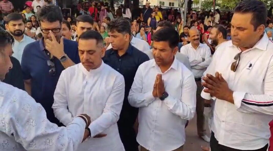 ऋषिकेश। कांग्रेस के वरिष्ठ नेता और उद्योगपति रॉबर्ट वाड्रा इन दिनों अपने दो दिवसीय दौरे पर ऋषिकेश में है आज सुबह गंगा में रिवर राफ्टिंग का रोमांच लेने के बाद उन्होंने कांग्रेस कार्यकर्ताओ के साथ ऋषिकेश के त्रिवेणी संगम पर गंगा आरती की, इसके साथ साथ ही त्रिवेणी घाट पर समाजसेवी वरुण जुनेजा के साथ एक भंडारे का आयोजन भी किया। मीडिया मुख़ातिब होते हुए उन्होंने कहा कि कि लोग चाहते है कि वह सक्रिय राजनीति में आएं उन्हें लगातार अमेठी के लोगो का प्यार और सम्मान मिल रहा है, कहा कि अमेठी में स्मृति ईरानी ने वहां की जनता से किये हुए वादे नहीं निभाए है।